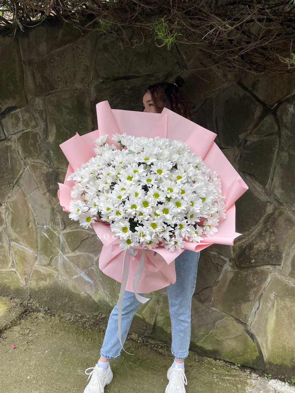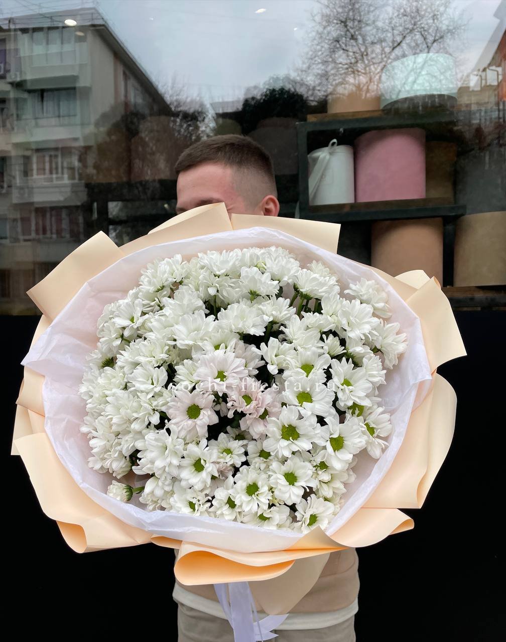 Семь пышных хризантем с коробочками хлопка собраны в мягкую композицию пастельных оттенков. Воздушная сборка и естественные линии создают ощущение легкости. Букет для тихих встреч и теплых слов.
