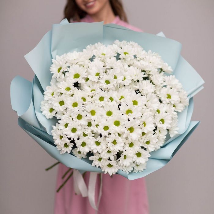 хризантема одноголовая - 9 шт., лента, дизайнерская упаковка.