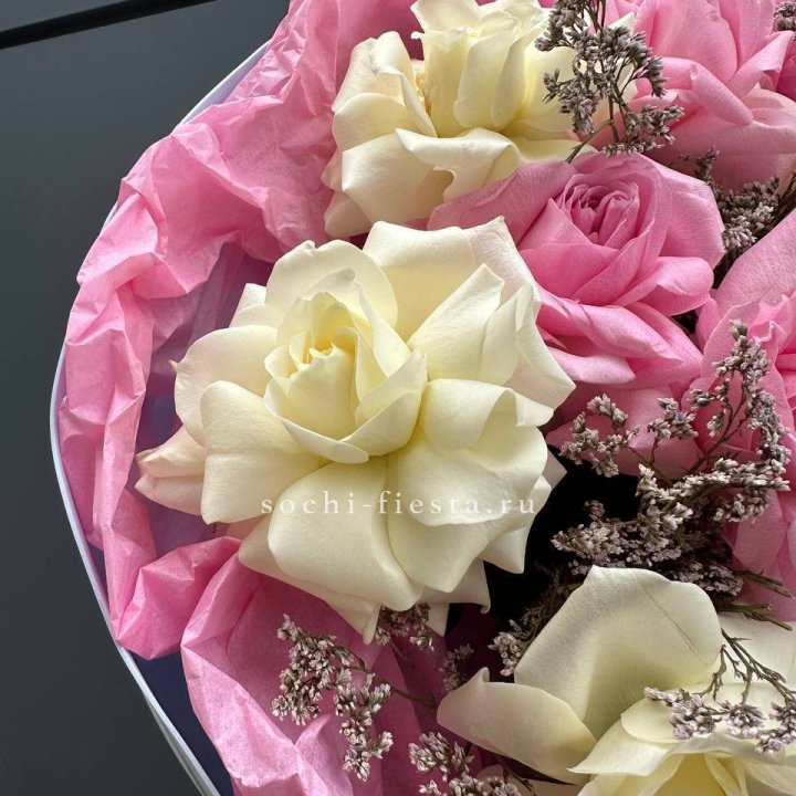 Мы работаем только со свежими цветами — букеты радуют от 7 до 14 дней и дольше при правильном уходе.
