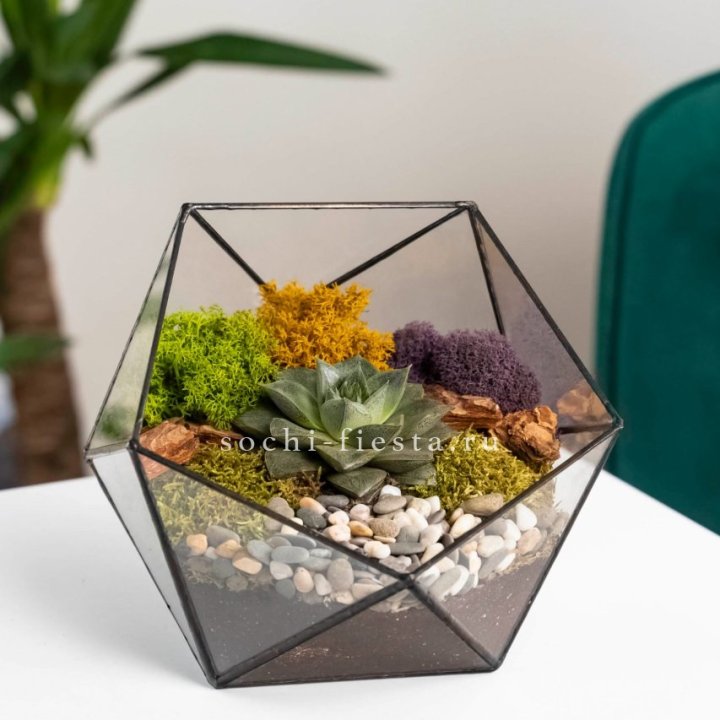 Растения в кашпо, сделанные вручную из стекла в технике Тиффани: суккуленты, мирсина, орхидея, денежное дерево, фикусы, каланхое, замиокулькасы, спатифиллумы