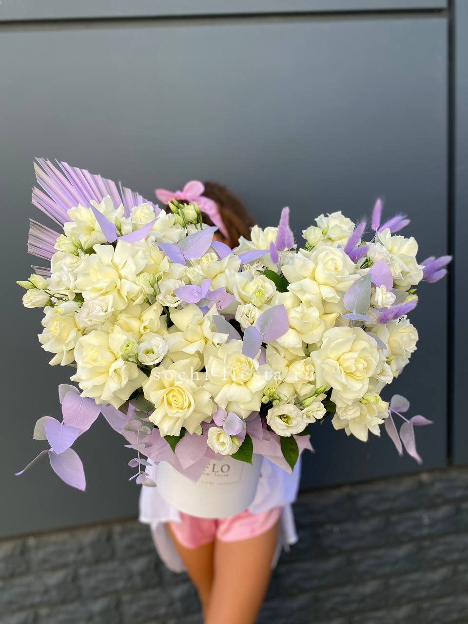 гортензия, розы, озотамус, диантус, бомбастик, хлопок, хризантема бокс 16.