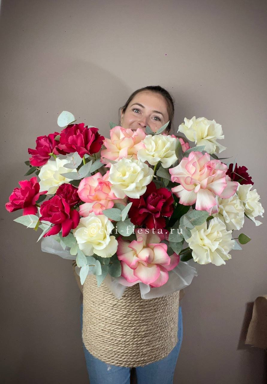 Для заказа товара "35 французских роз микс в джутовом боксе" с доставкой в Рыбинске нажмите в корзину