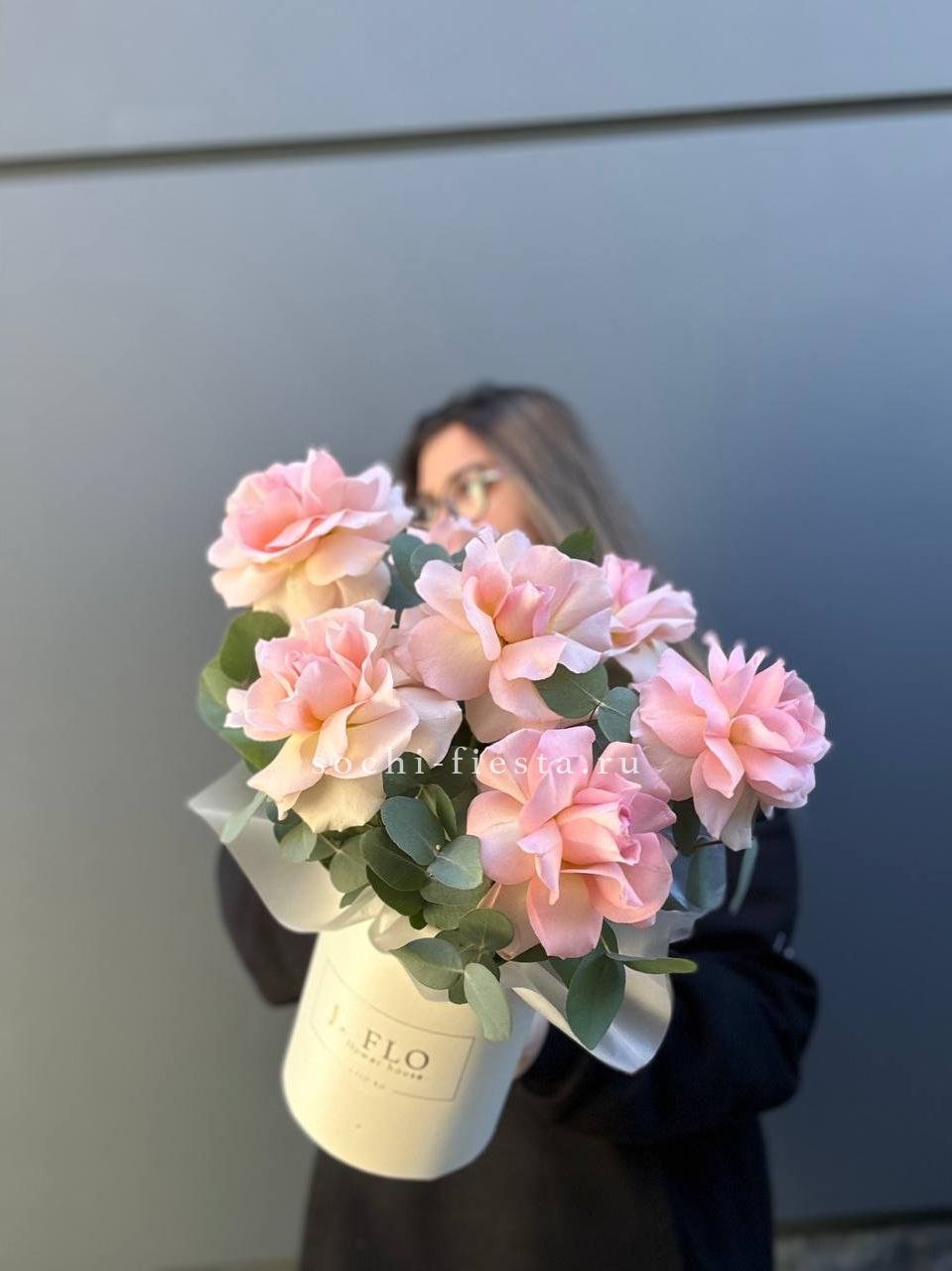 Белоснежные розы в минималистичной подаче отражают современную деловую эстетику. Семь бутонов образуют лаконичную форму без лишних деталей.