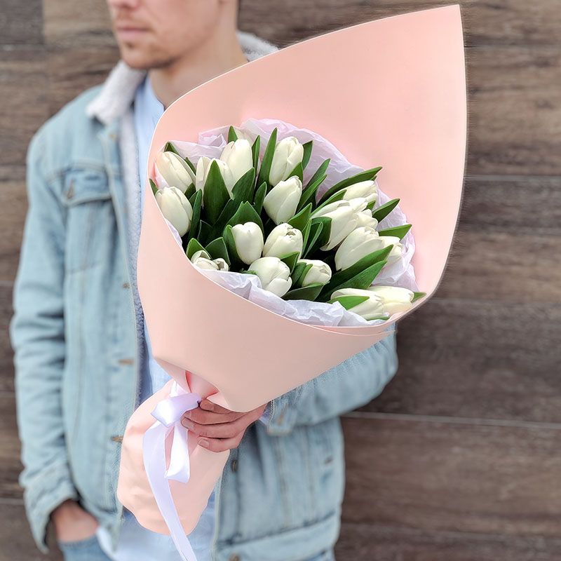 Девятнадцать тюльпанов создают ощущение весеннего утра и первых по-настоящему тёплых дней. Лёгкая упаковка сохраняет естественность линий и свежесть момента.