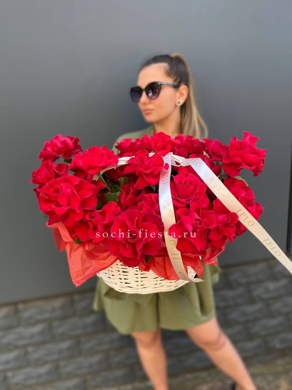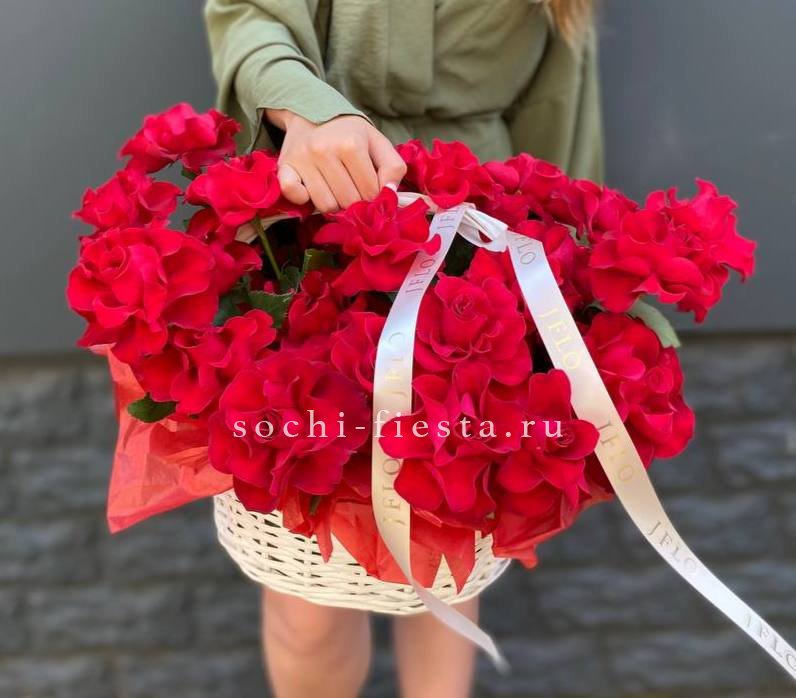 Для заказа товара "Красные французские розы в корзине" с доставкой в Рыбинске нажмите в корзину