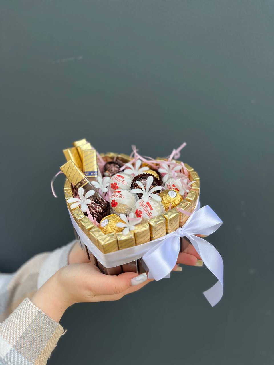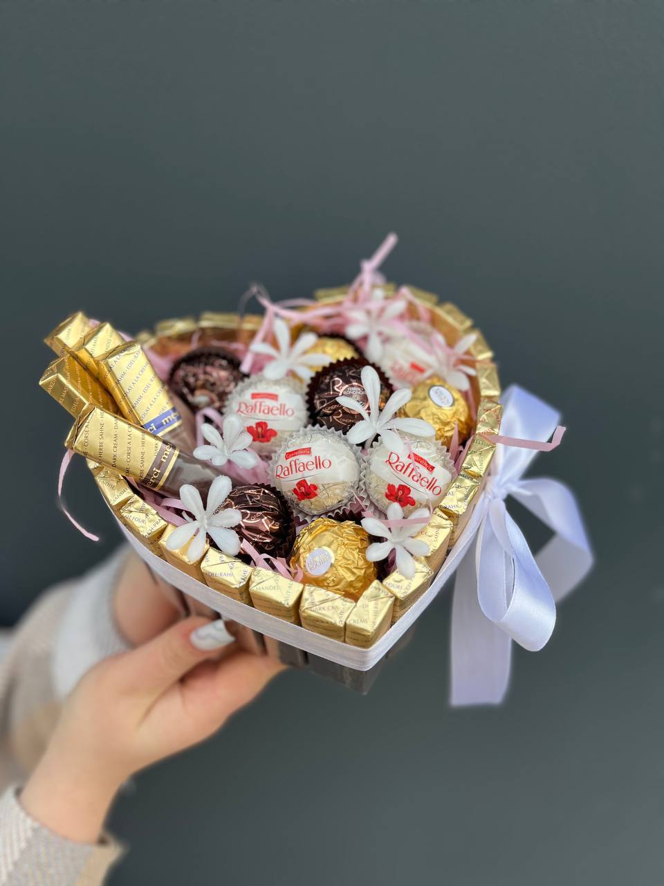 Классическое ассорти молочного шоколада с арахисом, вафлей и фундуком в узнаваемой коробке. Дополняет цветочную композицию или корзину сладким завершением.