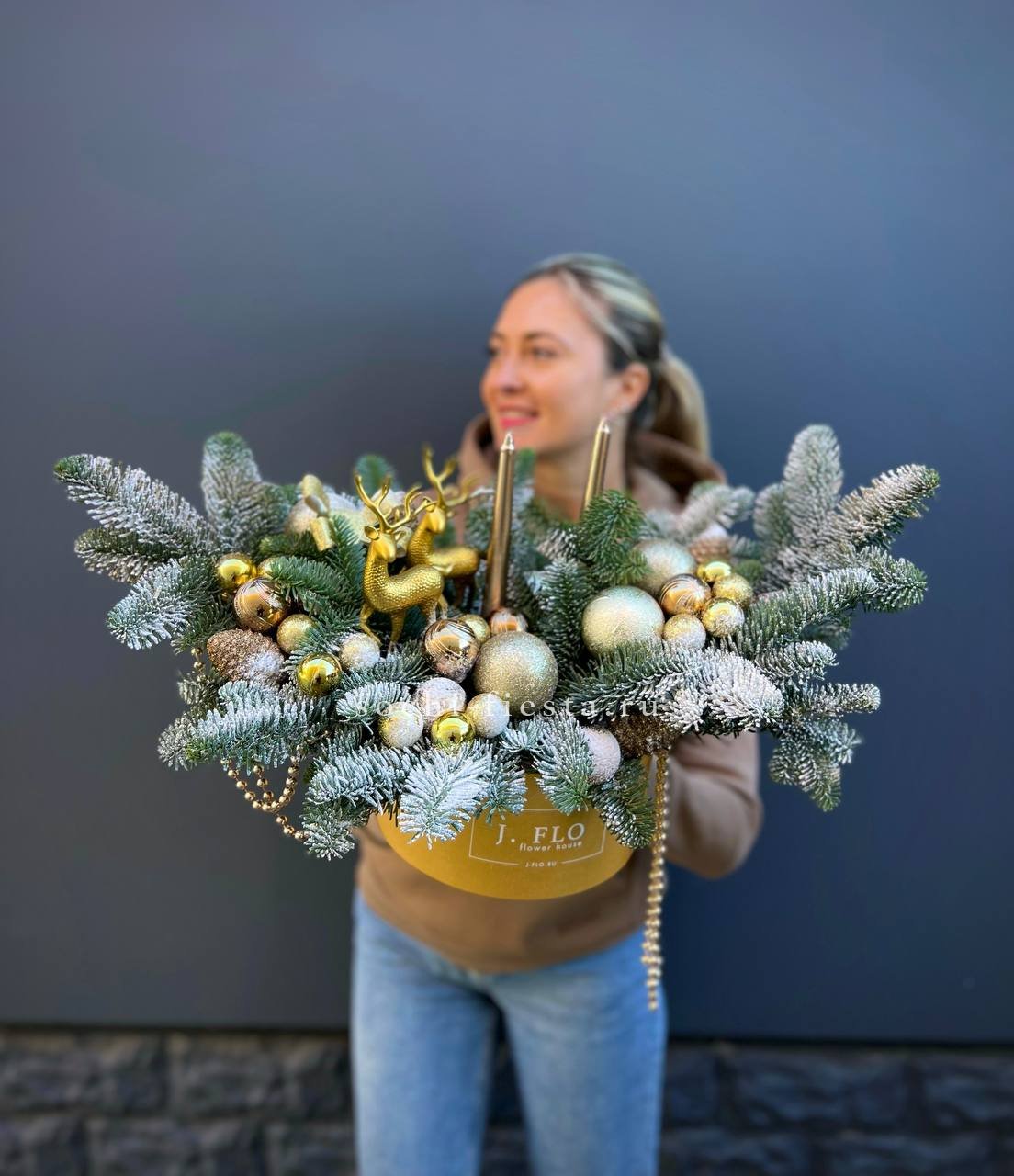 нобилис, цилиндр, оазис, свечи, новогодние игрушки, декор ВНИМАНИЕ! Готовая композиция (декор) может иметь незначительные внешние отличия от примера на фотографии.