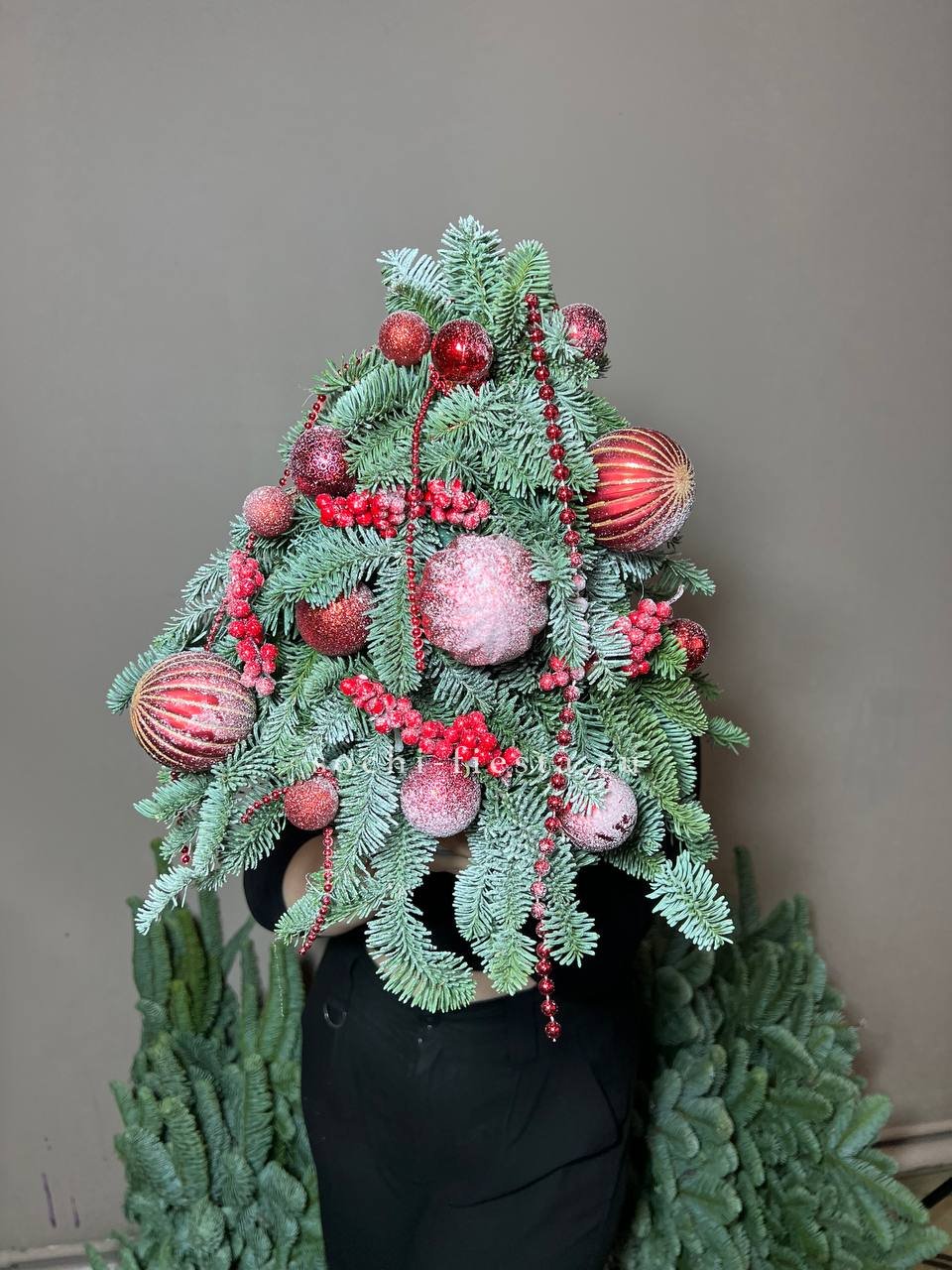 ёлочка с красными игрушками. Композиция может иметь изменения не значительные!Украшается только перед ёлочки)
