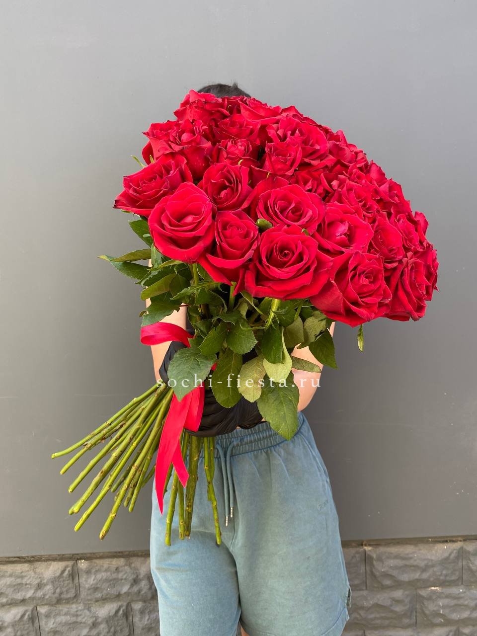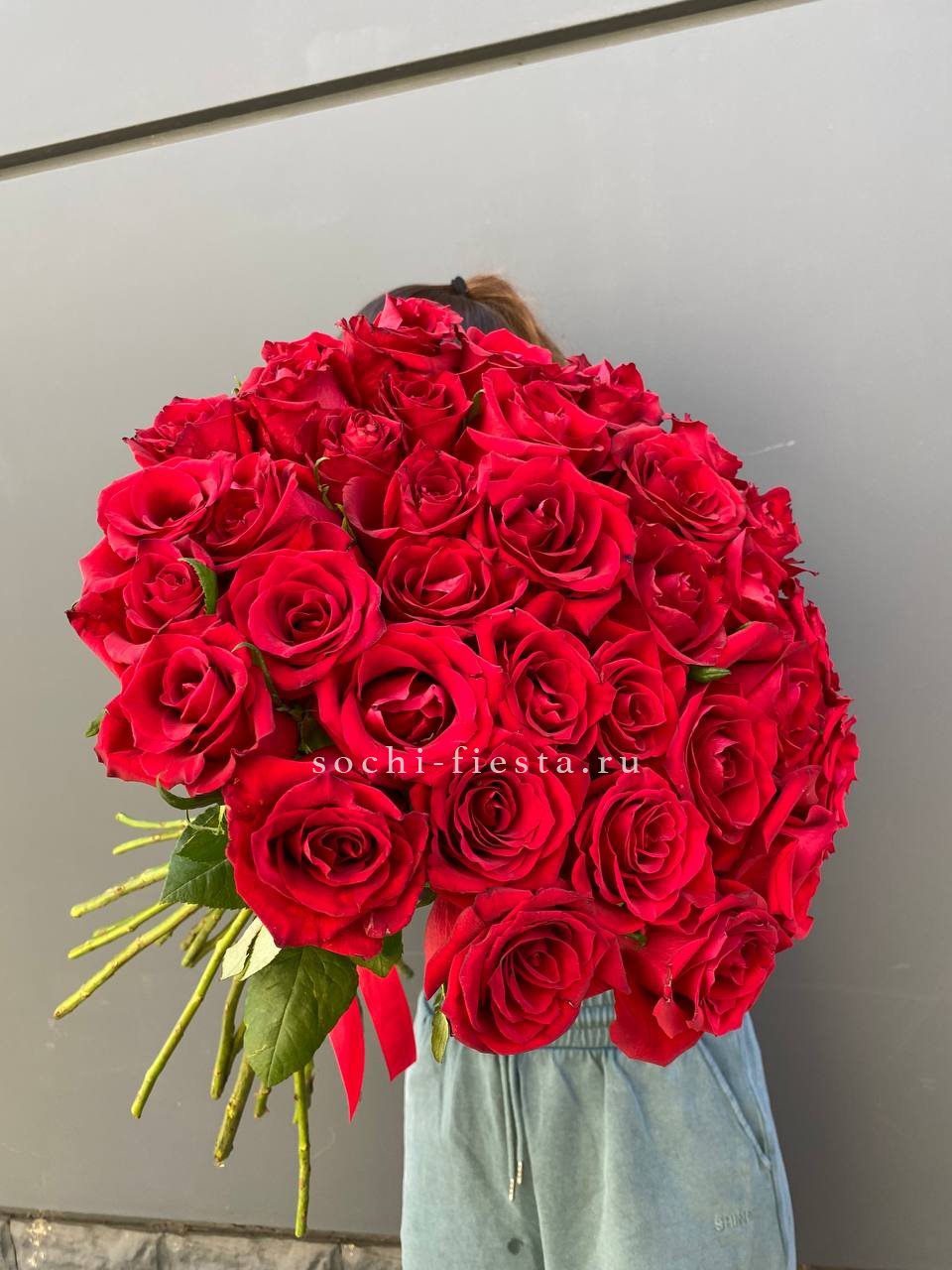 Охапка из ста одной розы – это про масштаб и драматичность момента. Белоснежные бутоны плотно собраны вместе, создавая монументальную форму. Композиция говорит сама за себя без лишних деталей.