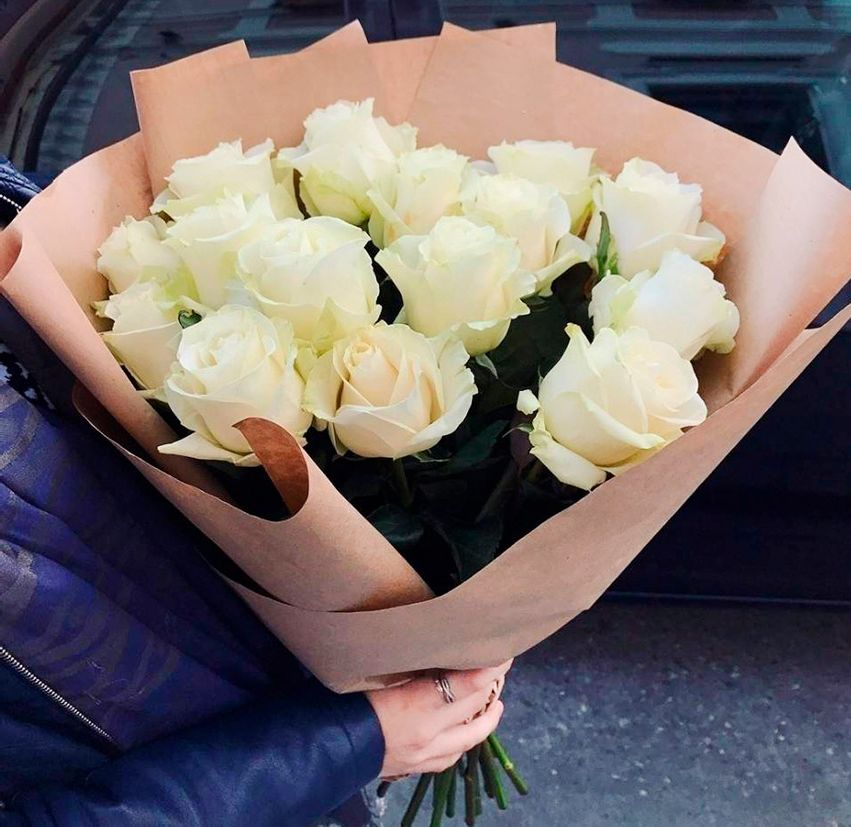 Пятнадцать белых роз в упаковке кофейного оттенка создают спокойное сочетание света и теплой глубины. Лаконичная форма букета удобна для вручения и дальнейшего размещения.