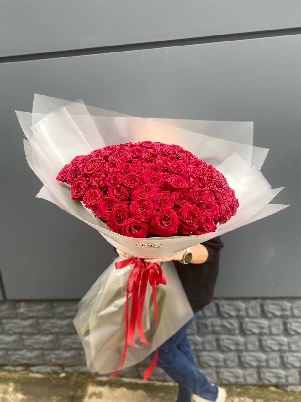 Букет из 101 высокой красной розы — это символ абсолютной преданности, роскоши и глубоких чувств. Такая композиция считается непревзойденным подарком для самых значимых моментов в жизни.