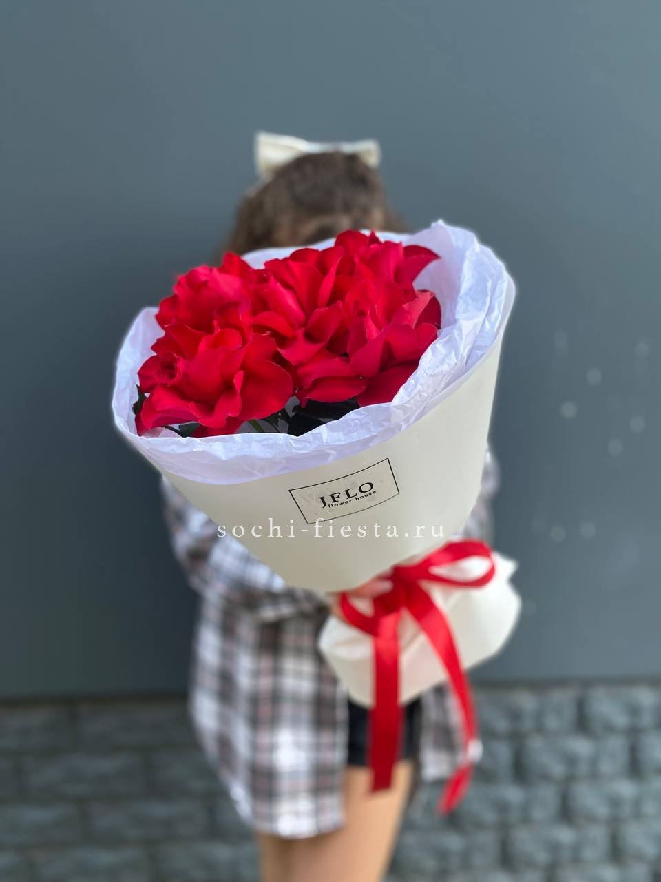 Двадцать один бутон держится долго и сохраняет свежесть благодаря качественному отбору и аккуратной сборке. Форма букета остаётся стабильной, а фоамиран защищает стебли и облегчает размещение в вазе.