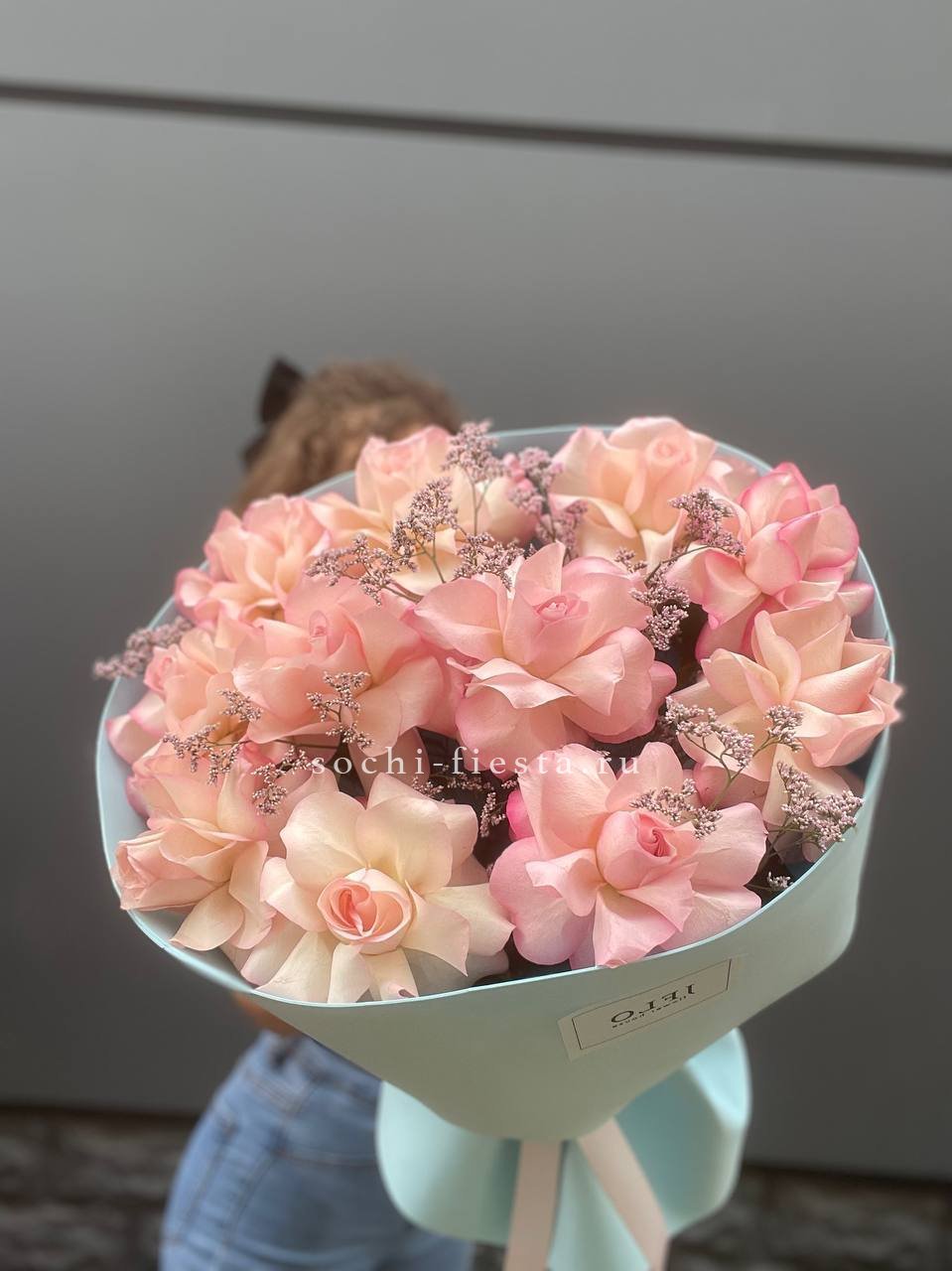 11 французских роз, лимониум, дизайнерская упаковка.