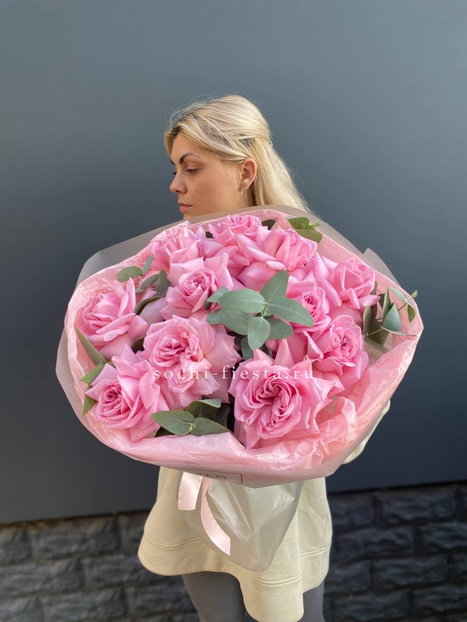 вывернутые розы - 11 шт., эвкалипт-2шт, лента, авторская упаковка.