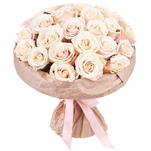 15 высоких кремовых роз, лента, упаковка на выбор.