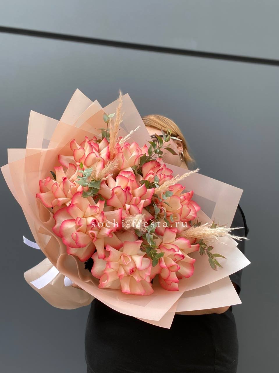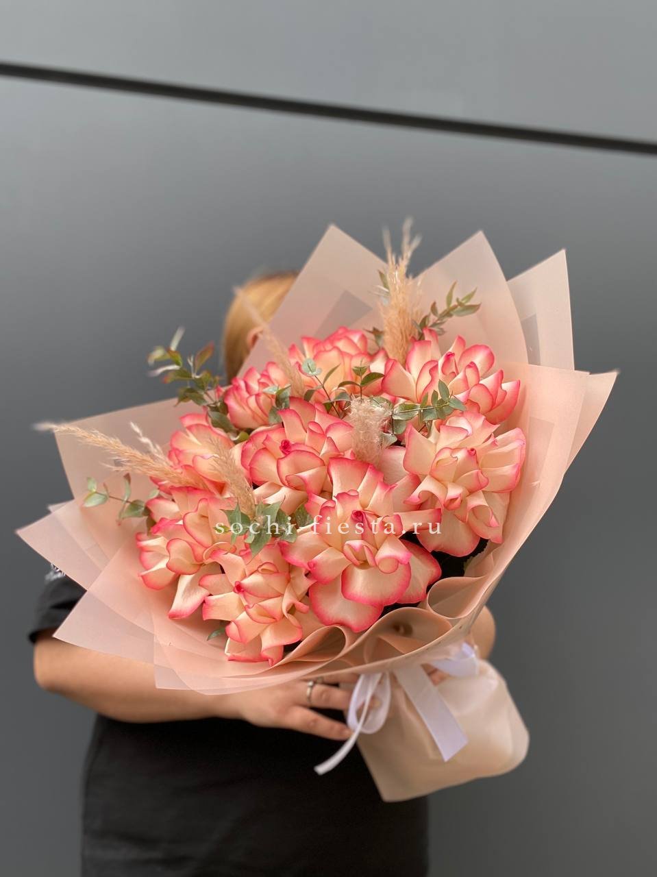 вывернутые розы, эвкалипт, лента, авторская упаковка.