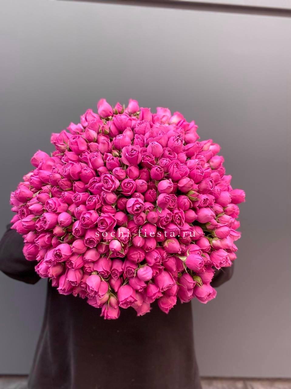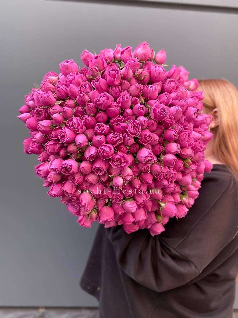 101 пионовидная кустовая кустовая роза Мисти Баблс, лента, дизайнерская упаковка.