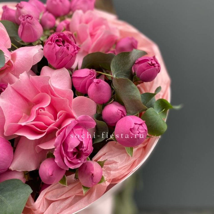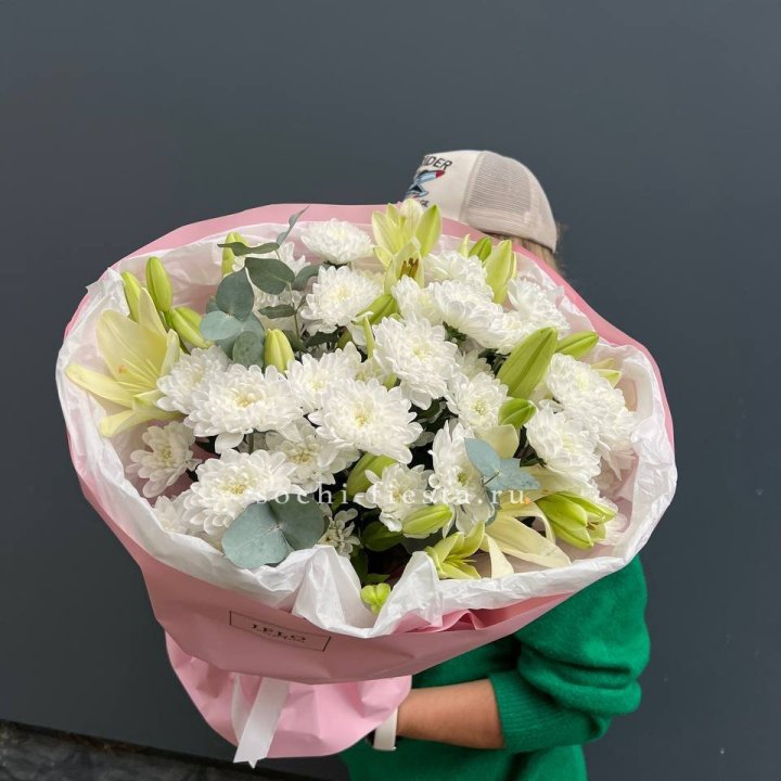 Зима и лето в Рыбинске — розы и хризантемы как основа. Эти виды стабильны в поставках круглый год. Флорист дополняет их сезонными акцентами: хвойные ветви зимой, открытая эустома летом. Сборный букет в любое время года выглядит живым и актуальным.
