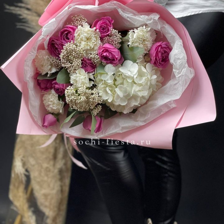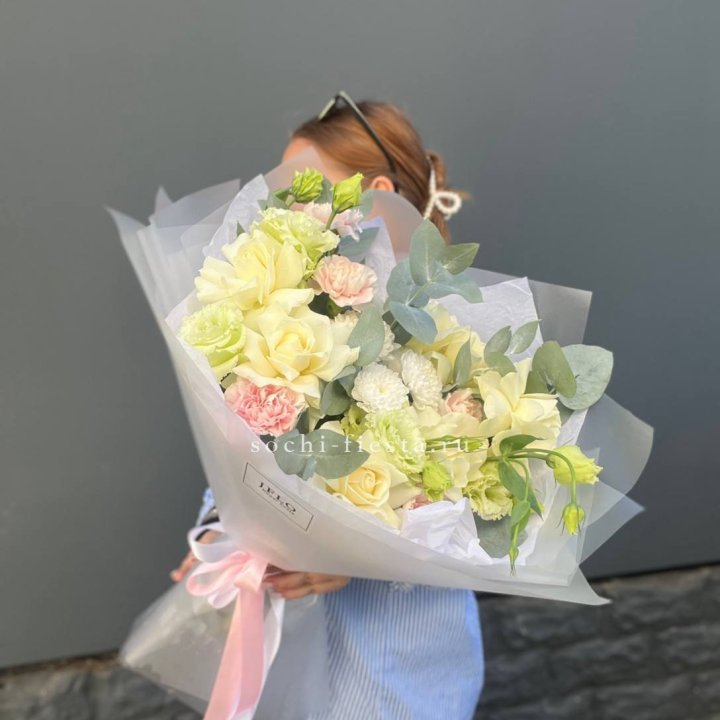 Зима и лето в Рыбинске — розы и хризантемы как основа. Эти виды стабильны в поставках круглый год. Флорист дополняет их сезонными акцентами: хвойные ветви зимой, открытая эустома летом. Сборный букет в любое время года выглядит живым и актуальным.