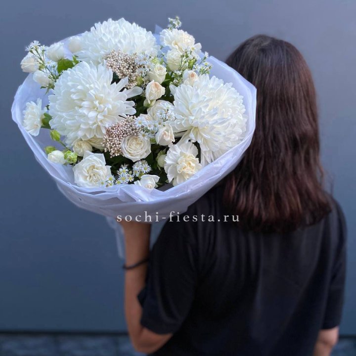 Зима и лето в Рыбинске — розы и хризантемы как основа. Эти виды стабильны в поставках круглый год. Флорист дополняет их сезонными акцентами: хвойные ветви зимой, открытая эустома летом. Сборный букет в любое время года выглядит живым и актуальным.