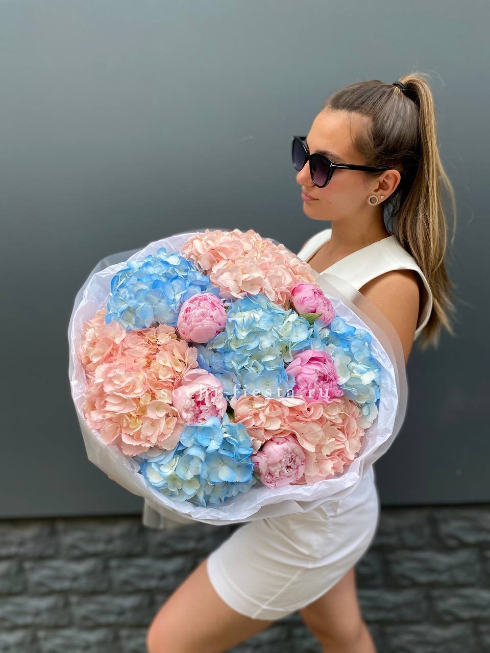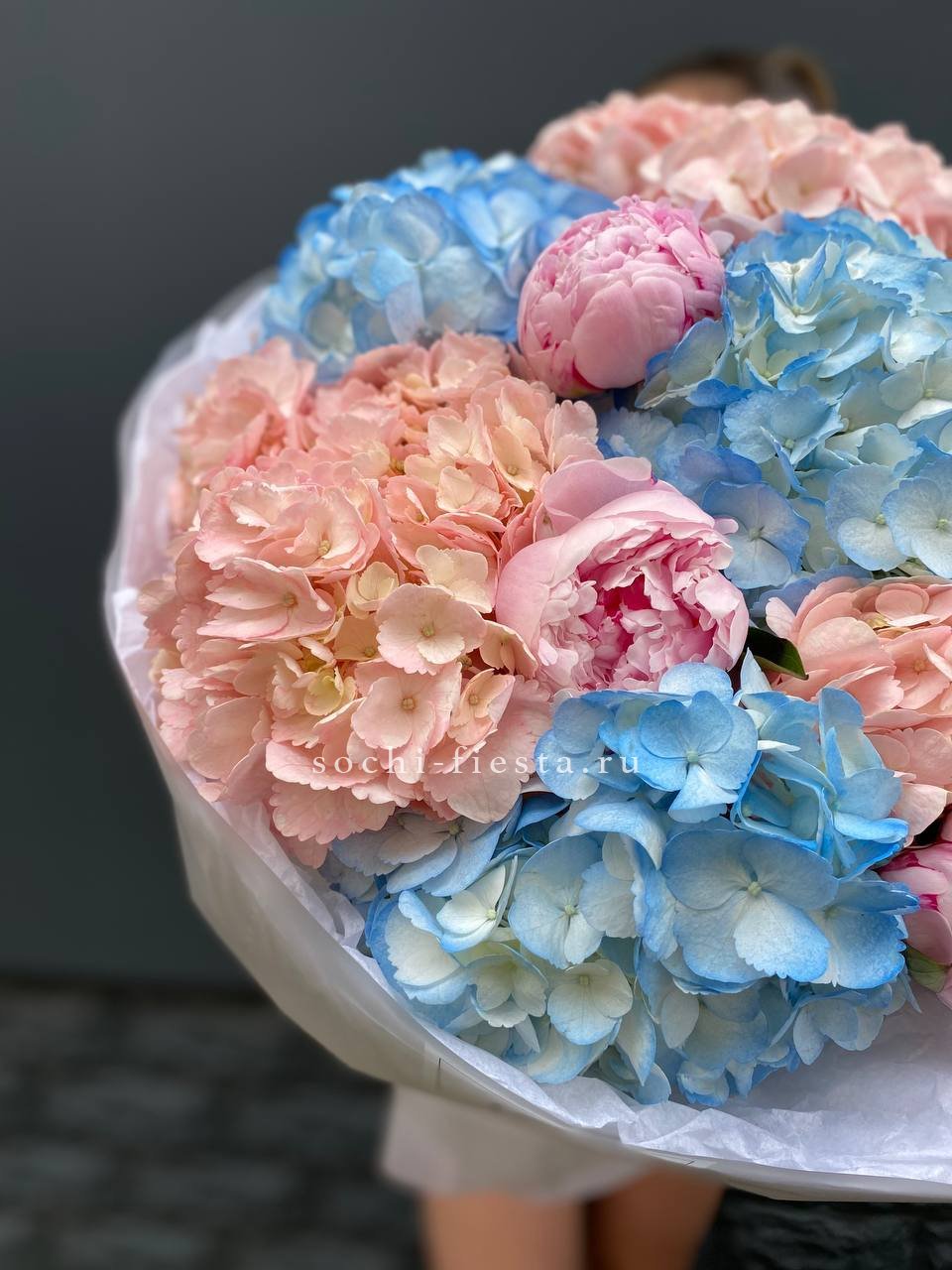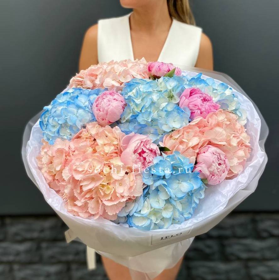 Дуобукет гортензии с пионами